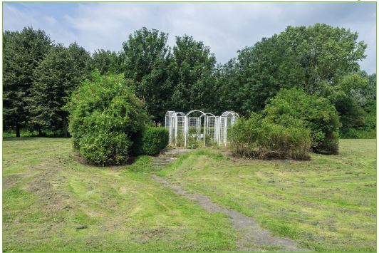 Die verkering ging na 2,5 maand uit, de bankjes staan er nog. ‘Het is een soort kapelletje met witte stalen bogen. Ik loop daar vaak met mijn hond en chill er nog wel eens met vrienden.’
