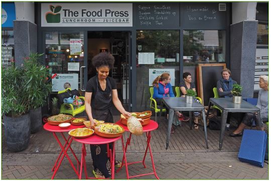 ‘Ze maken eten dat heel goed bij mij past. Het is zonder vlees, vooral biologisch, met veel groenten en kleurrijk. De lunchroom zelf heeft iets Spaans salsa-achtigs, qua inrichting en muziek. In andere grote steden heb je meer van dit soort tentjes, maar in Almere ken ik niets anders waar ze zulk gezond en lekker eten maken.’