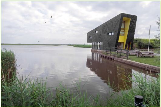 ‘Als ik bezoek heb, stel ik vaak voor om daarheen te gaan. Het is een heel bijzonder gebouw in een prachtige omgeving. Je kan daar lekker wandelen, fietsen, zitten, vogels kijken en binnen wat drinken. In Gasterij De Oostvaarders is het heerlijk toeven. Het water kabbelt daar onder je door. Behalve als het vriest natuurlijk. Dan stap je buiten zo op het ijs om een rondje te schaatsen.’