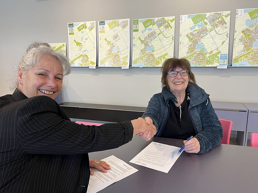 Greta Verduin was jarenlang de reizende reporter van Almere. Bij menig opening en culturele activiteit in Almere was zij te vinden. Op de websites Almere City News, Imago van Almere en Kunst Enzo deed ze verslag met sfeerimpressies, foto's en video's. Een archief met onder videobanden en allerlei ander historisch materiaal heeft Greta Verduin aan Stadsarchief Almere geschonken. Vandaag ondertekende ze de schenkingsovereenkomst en overhandigde ze haar archief aan Anneke van der Zee, beheerder collecties van Stadsarchief Almere.