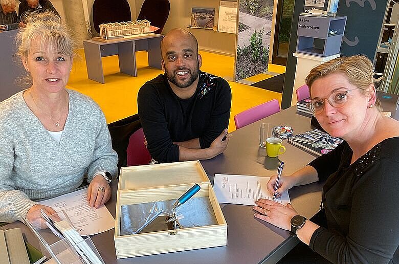 Vandaag werd de bruikleenovereenkomst getekend door Danielle, de eigenaar van Thermen La Mer. De komende weken is de troffel in het enige Almeerse saunacomplex te bewonderen. Daarna komt de troffel weer terug naar Stadsarchief Almere en is deze weer te zien tijdens onze openingstijden op di, wo en do van 12.00 - 16.00 uur.