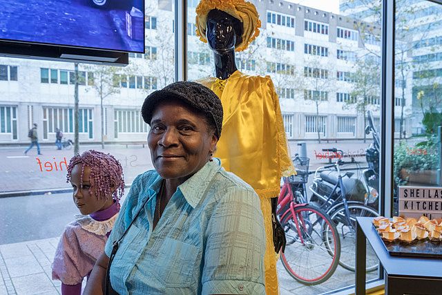In de tentoonstelling waren diverse grote en kleine etalagepoppen te zien onder andere van een dame met een gele koto, een jurk die vrouwen dragen op hun 50ste verjaardag, een paarse koto die wordt gedragen als men 60 jaar is, een pop met een blauwe oorbel, een bigi koto of heri skin en betekent dat zowel de hoofddoek als de koto van dezelfde stof is, en een pop met rode oorbel en tas. Deze heet miss de Neef, de vrouw van een slaven eigenaar. Zij vond de dracht van de slavinnen zo mooi en creëerde haar eigen model op basis van die dracht. De hoofddoek heeft ook “miss de neef of wel opo lantji”.