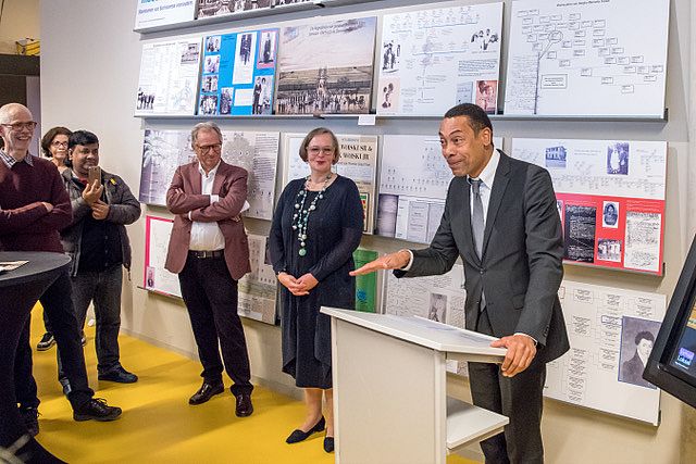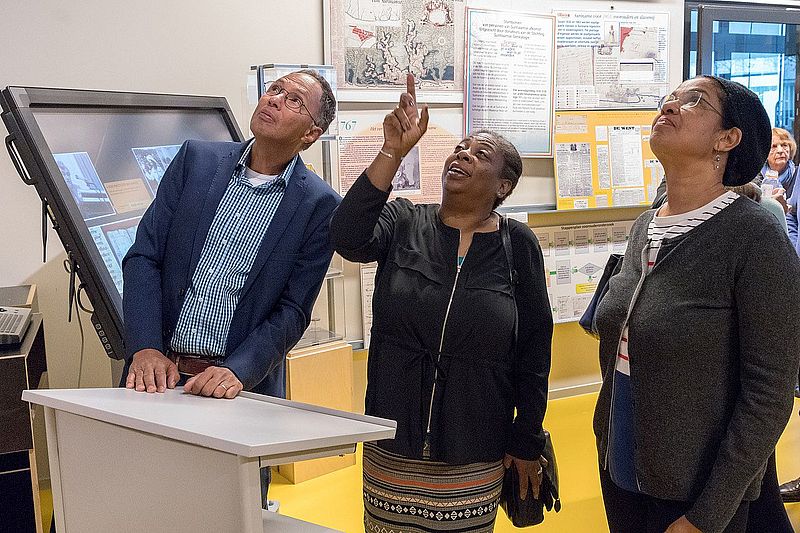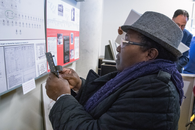 Scroll door foto's van de tentoonstelling en de opening met burgemeester Franc Weerwind, stadsarchivaris Ellis Kreuwels en initiatiefnemer Huub van Helvoort.