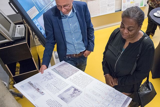slavenregisters, doop-, trouw- en overlijdensakten en krantenberichten, zijn er ook oude foto’s uit Suriname te zien. En tevens verhalen over bevindingen tijdens het onderzoek, zoals de reconstructie van de moord op een zekere Julius Marcus Arah.