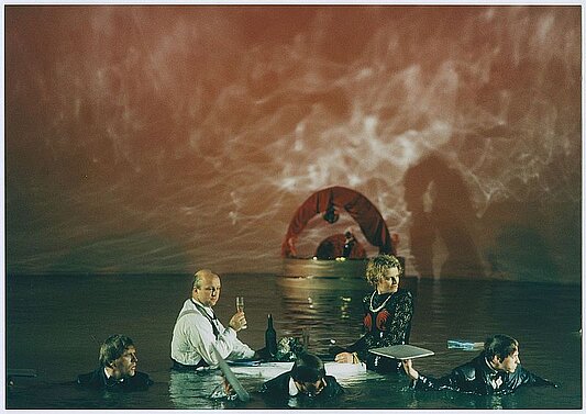 Als twee pasgetrouwden wakker worden na hun huwelijksnacht, zien ze dat de een zondvloed heeft plaatsgevonden: wereld is onder water gelopen. Met boekenkasten en koelkasten als vlot, proberen ze letterlijk het hoofd boven water te houden. Ze komen terecht in een restaurant - heel toepasselijk Drijf-inn genoemd - waar ze worden bediend door zwemmende obers.