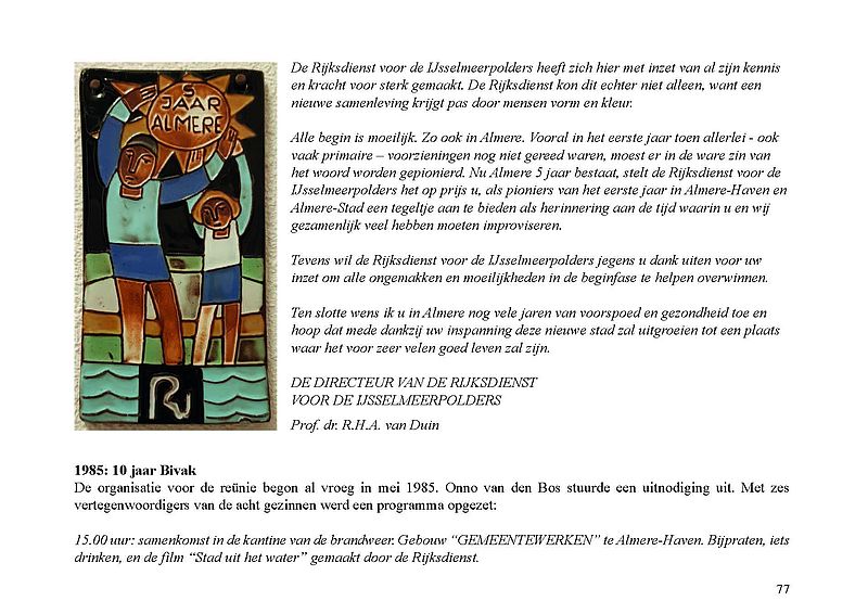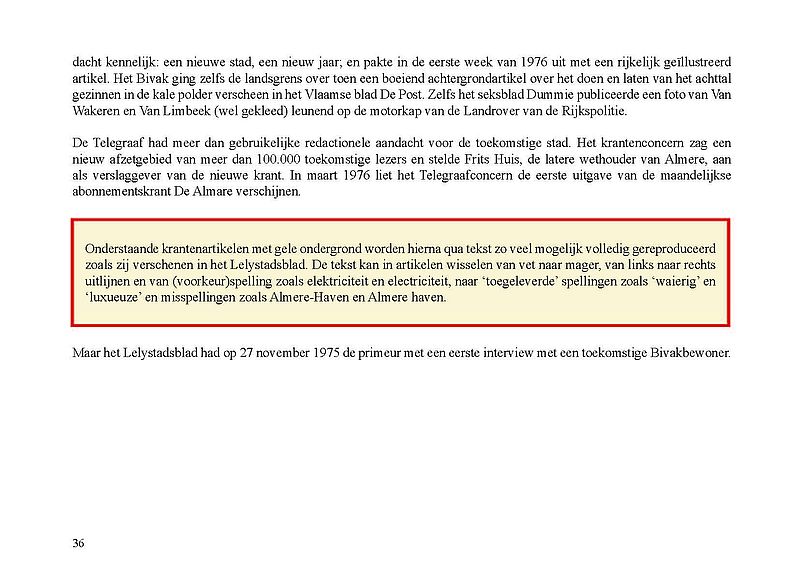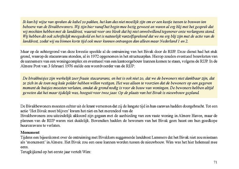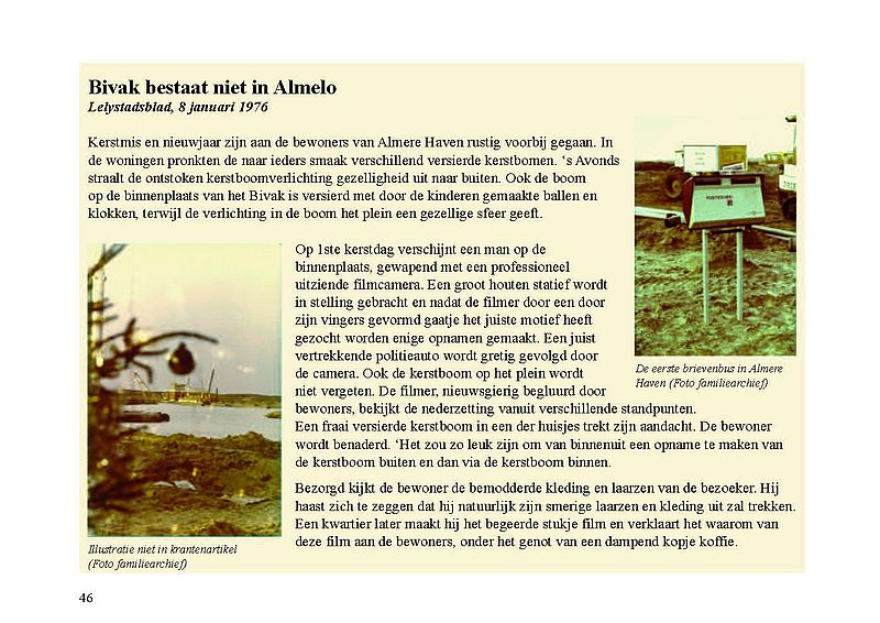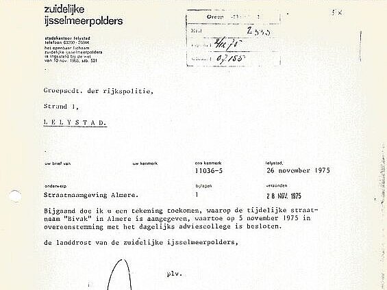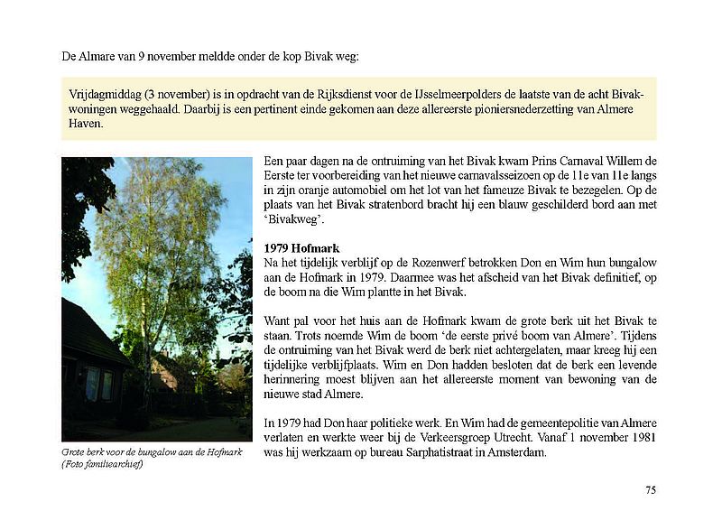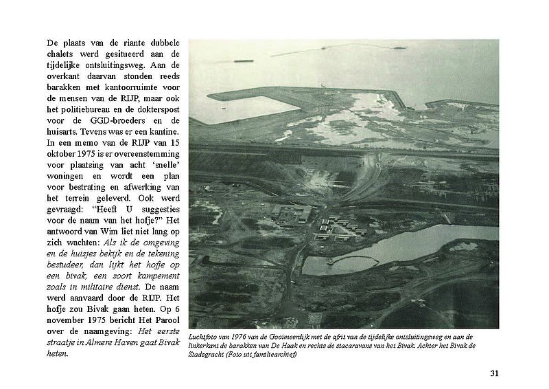Ter gelegenheid van de publicatie van het e-book heeft Stadsarchief Almere in samenwerking met Jak Boumans een reproductie laten maken van een tekening van Almere Haven waarop indertijd met viltstift de locatie van het Bivak werd aangegeven. De tekening en de bijbehorende brief zijn in bezit van Wim Leeman. In de brief van de Rijksdienst IJsselmeerpolders, gedateerd 26 november 1975, staat 'Bijgaand doe ik u een tekening toekomen waarop de tijdelijke straatnaam 'Bivak' in Almere is aangegeven'. Deze tekening is in november 2021 tevens de 'foto van de maand', een serie waarin we je meenemen door de geschiedenis van de stad.