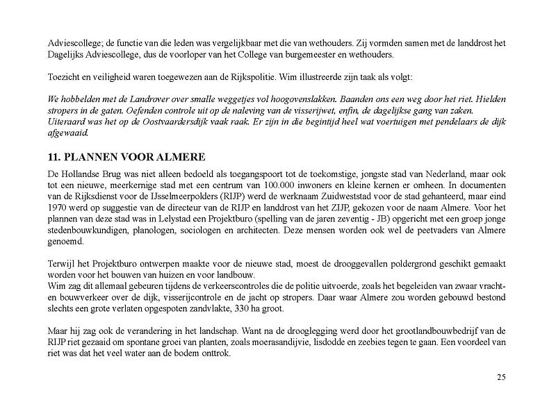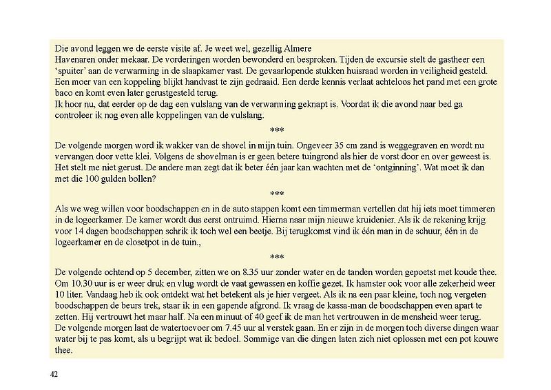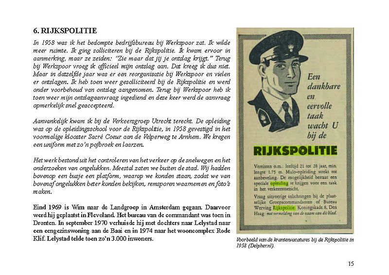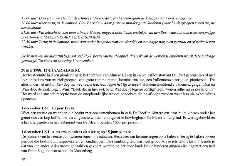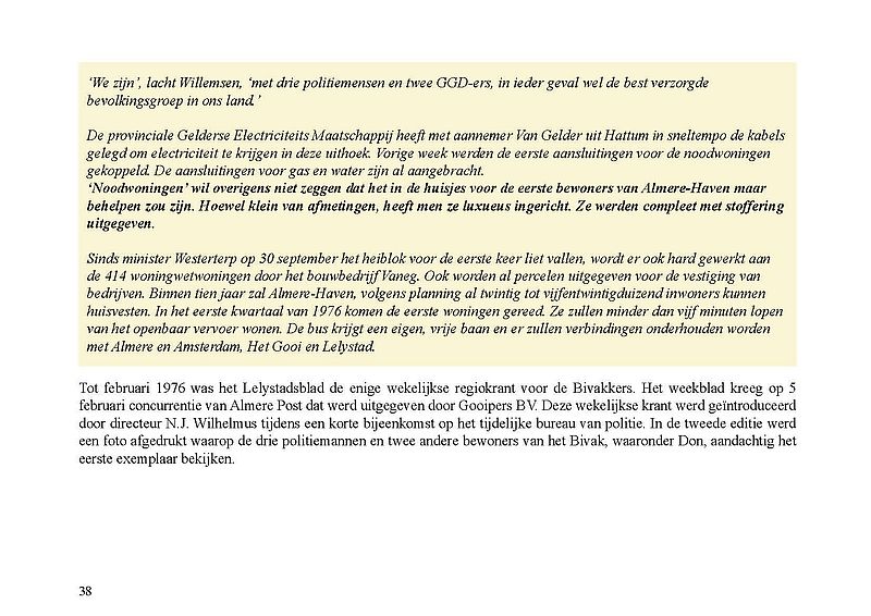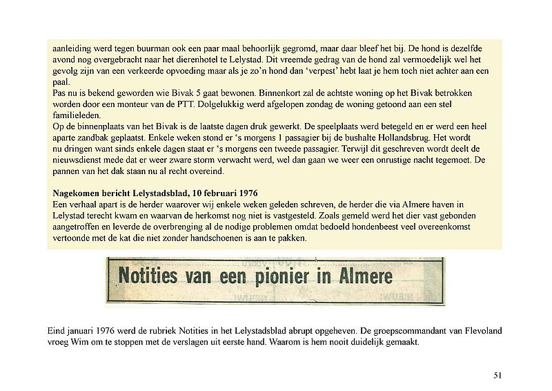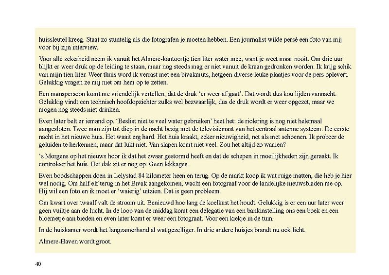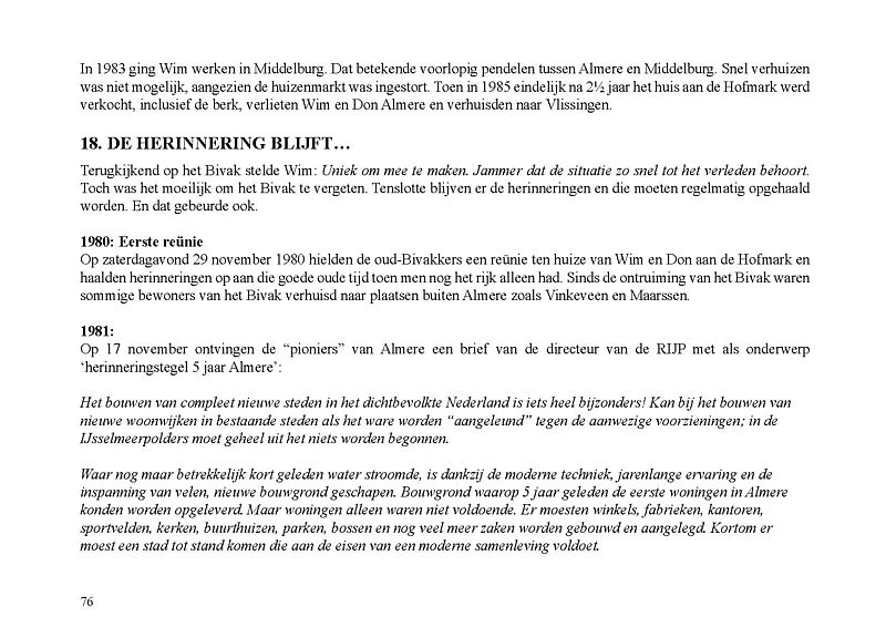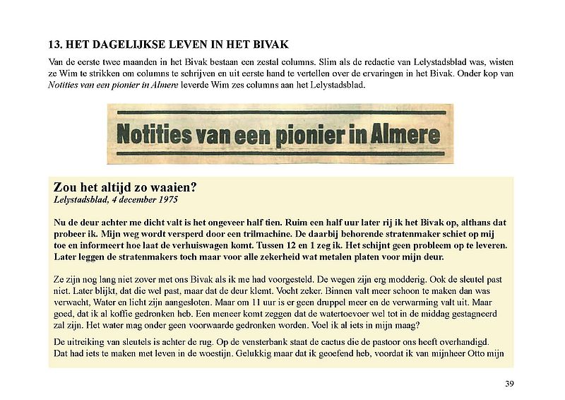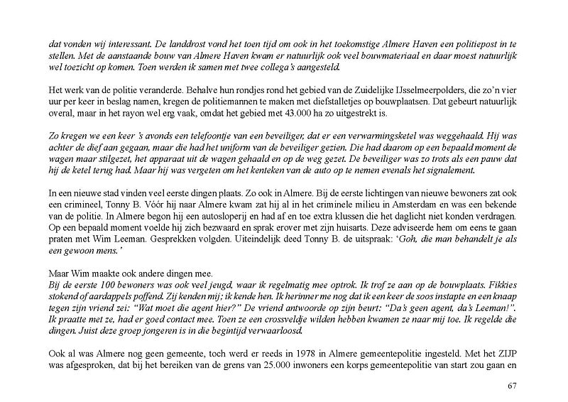 In dit Levensboek is Wim Leeman, geboren in 1930 in Utrecht, de hoofdpersoon. In 1958 begon hij aan een loopbaan bij de Rijkspolitie. In september 1970 was zijn stand- en woonplaats Lelystad en vanaf 1975 Almere. Hij woonde vanaf 1 december 1975 in een tijdelijke woning, in het zogenaamde Bivak in Almere Haven. In juli 1978 kwam er einde aan het avontuur in het Bivak en ging de loopbaan van Wim bij de Rijkspolitie verder tot zijn vervroegd pensioen in 1988.